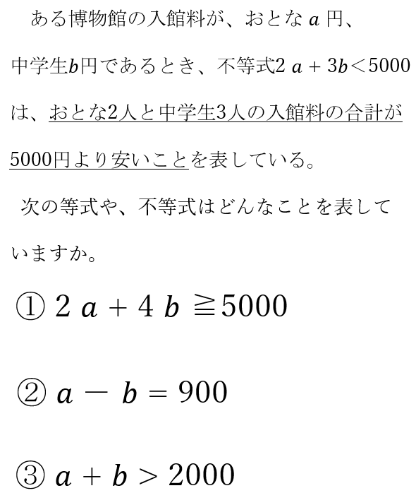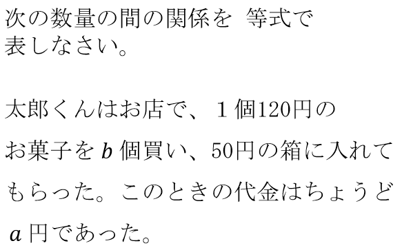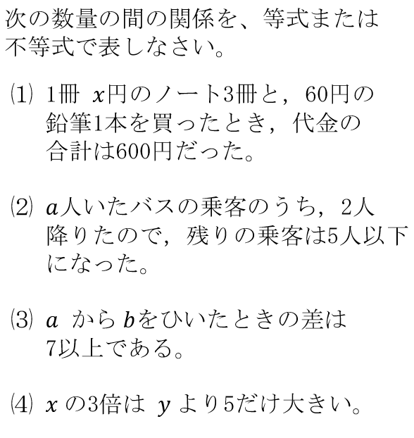 - 34 等式、不等式で表された数量の関係をことばでいう